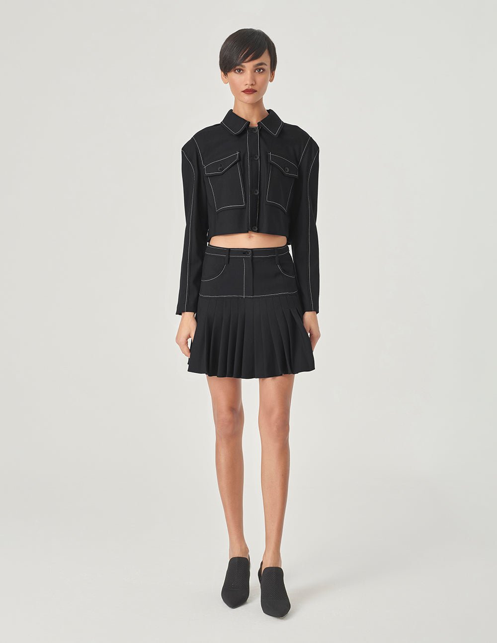 MARYLING’s fashionable silhouette short jacket is classic minimalism. It uses white lines on a black background to outline a cool outline. The sleeves are uniquely designed. effortlessly showing a young and confident style. adding vitality to daily dressing.