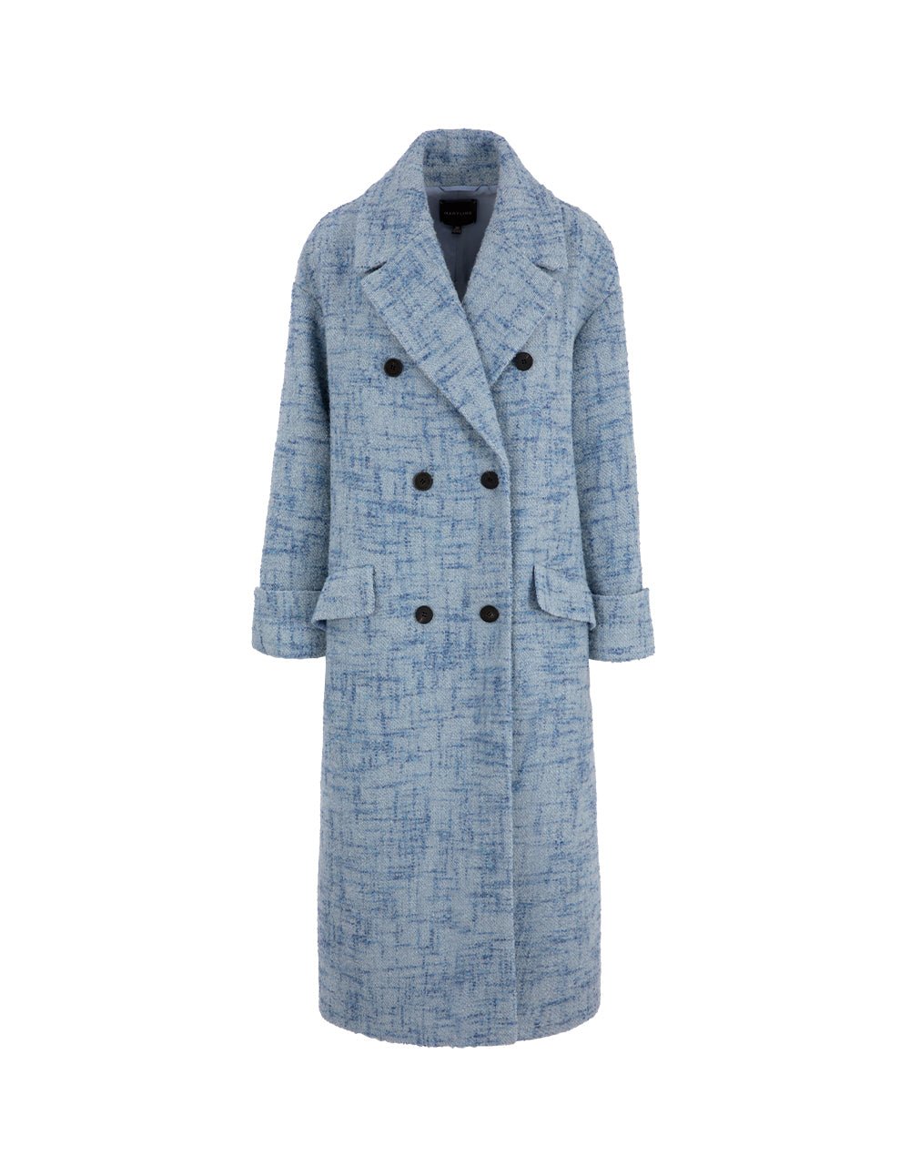 MARYLING Blue Loose Double-Breasted Long Tweed Wool Coat