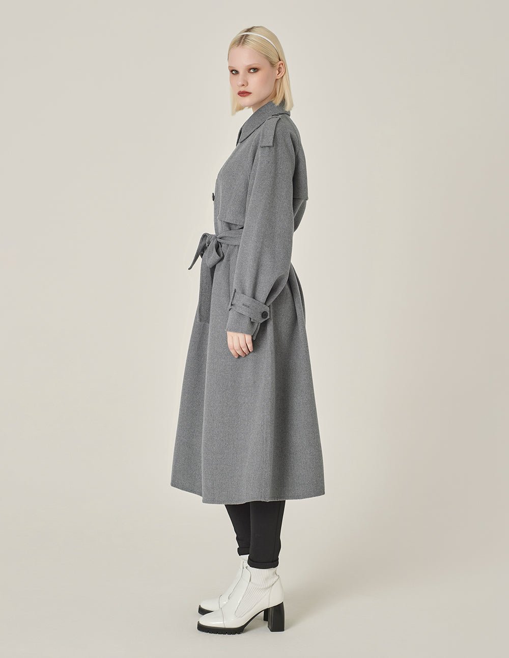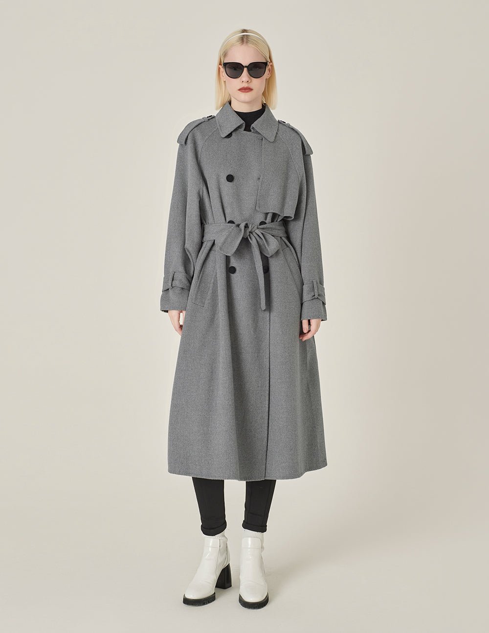 MARYLING’s coat adopts a neat H version silhouette. decorated with neutral and classic black double-breasted details. The overlapping slit design on the back is novel and fashionable; the textured double-sided cloth craftsmanship is light and warm. . showing classic French elegance. retro and modern.