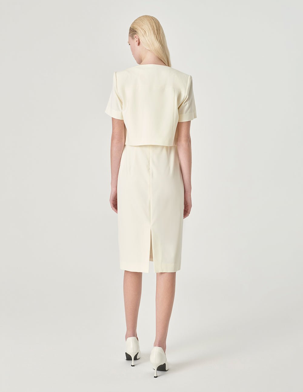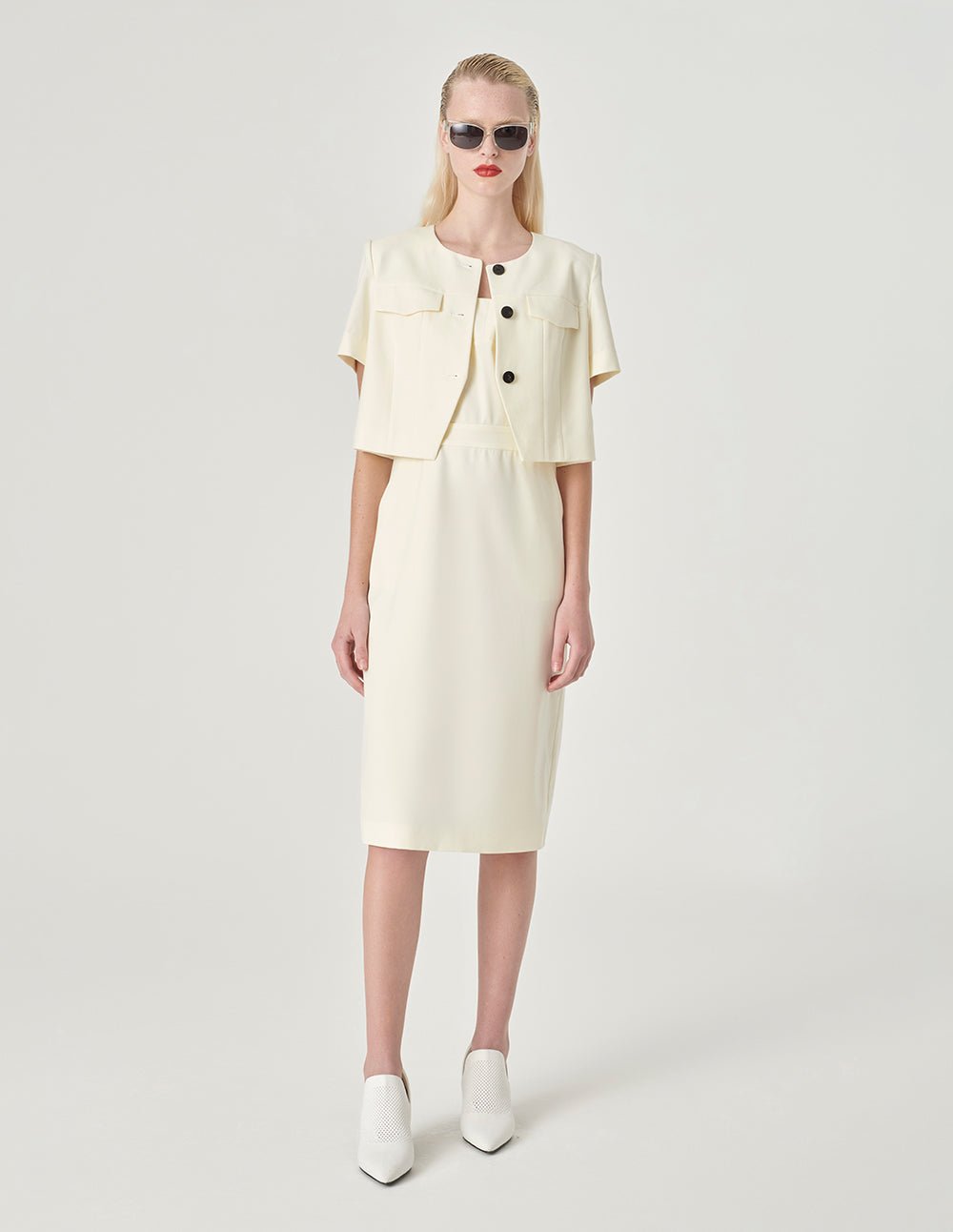 MARYLING’s jacket adopts a small round neck design. showing a retro and fashionable feel; the detailed design of the slit at the hem can greatly improve the height ratio. and the contrasting single-breasted buttons with a gentle creamy beige are fashionable and sophisticated.