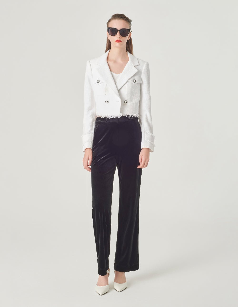 Be the first to review “MARYLING White Fringed Tweed Short Blazer”