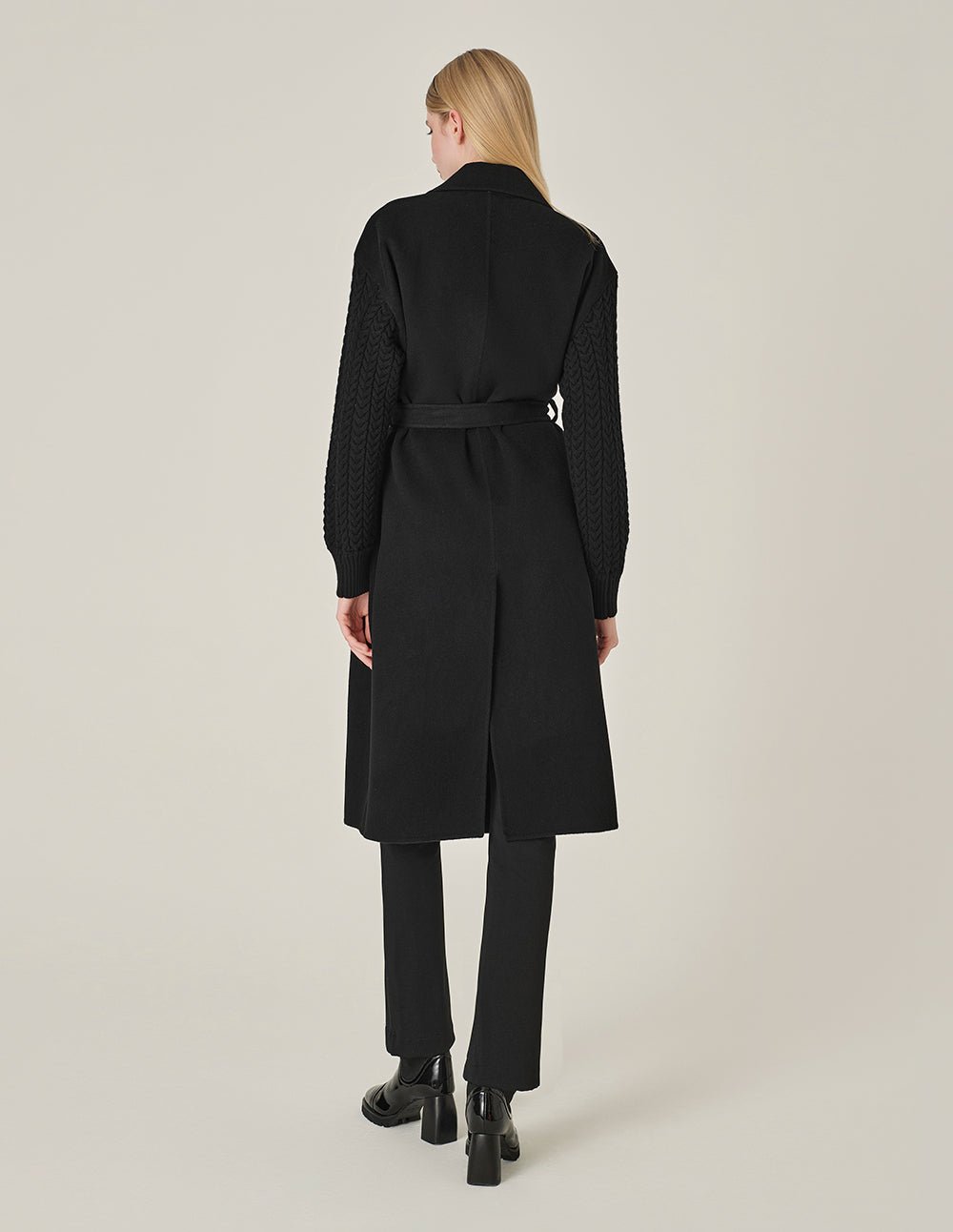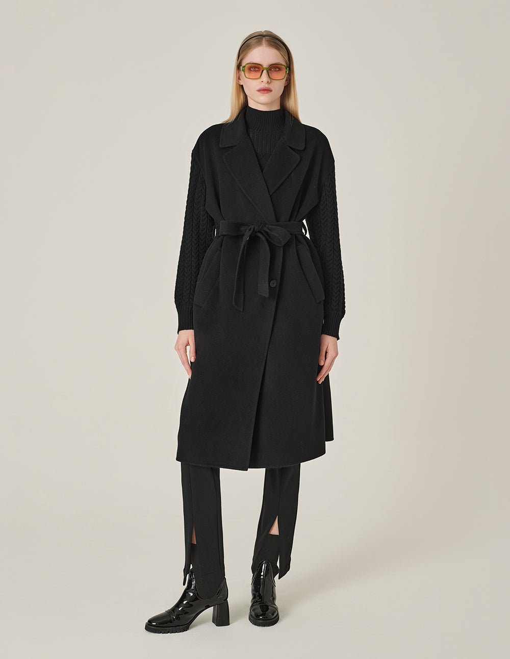 MARYLING’s lapel double-breasted coat is made of double-sided wool. The sleeves have button-knit stitching and a streamlined tailoring design. The overall style is simple yet elegant. creating a strong and exquisite sense of detail. showing a woman’s personal charm. style.